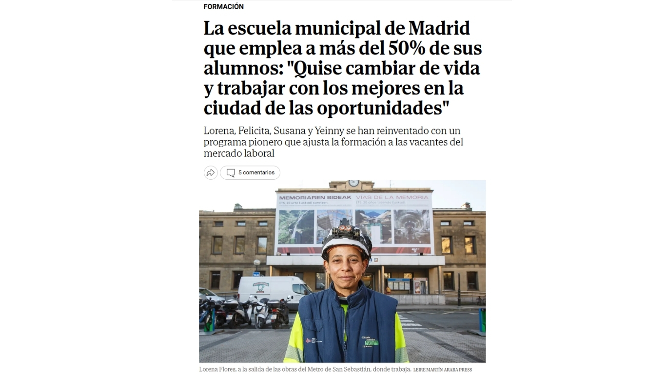 馃審Os dejamos la noticia completa aqu铆: La escuela municipal de Madrid que emplea a m谩s del 50% de sus alumnos: 芦Quise cambiar de vida y trabajar con los mejores en la ciudad de las oportunidades禄 | Madrid