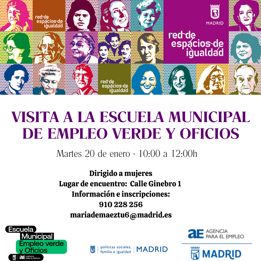 El próximo martes 20 de enero, la Escuela Municipal de Empleo Verde y Oficios acogerá una sesión informativa dirigida a mujeres del Espacio de Igualdad María de Maeztu, con el objetivo de dar a conocer las formaciones que ofrecemos y acercar las oportunidades profesionales del sector de los oficios y la construcción.